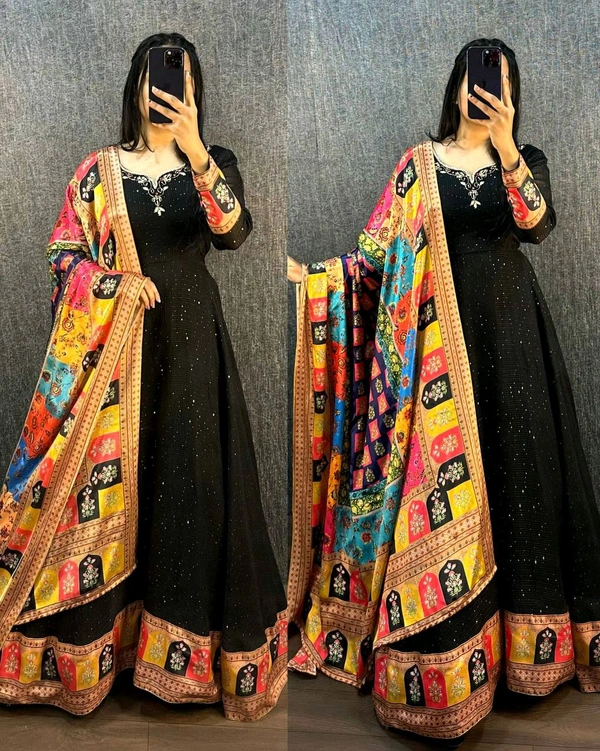 GOWN FABRICS : ORIGINAL VISCOS Georgette WITH CROCHET 180 lines EMBROIDERY with Beautifull HANDWORK š§µ šAND 7 inch TUSSER silk border*