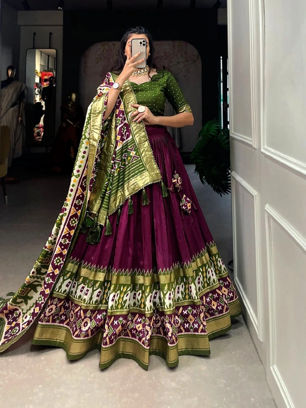 Lehenga Work : Patola Print With Foil Work